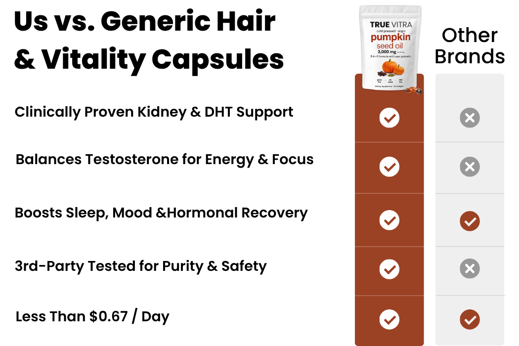 Regain your hair, energy, and confidence, naturally.  True Vitra® goes beyond standard hair supplements. It targets the root causes of thinning hair, poor circulation, hormonal imbalance, and kidney fatigue, to help your body function like it used to.