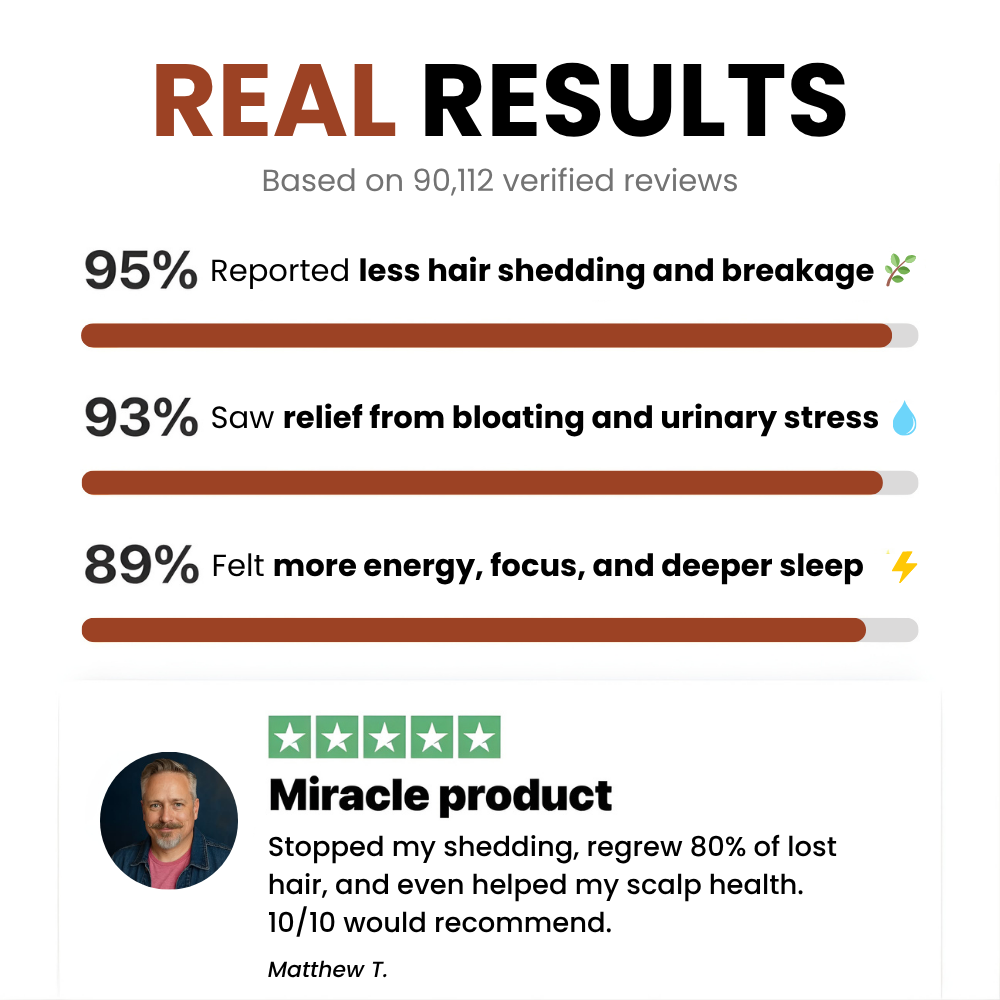 Consistency is key, your body needs daily nutrients to rebuild follicle strength, support kidney health and restore vitality.
